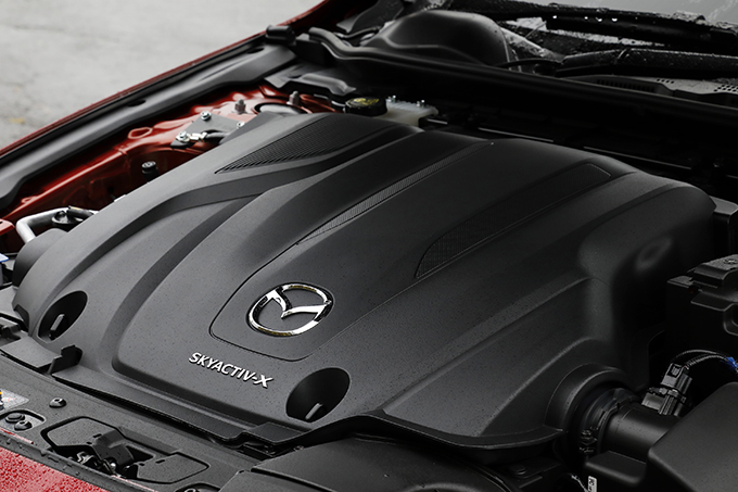 ▲ガソリンの「圧縮着火」による燃焼でリーンバーン(希薄燃焼)を可能とし、少ない燃料で高効率な燃焼を実現するというゆっくりと流したくなるような上品さ