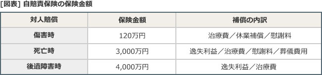 例えば、車を持っている父親(車両名義人)が運転中に単独事故を起こし、一緒に乗っていた母親・子どもがケガをしてしまった場合、父親以外の家族は自賠責保険で補償を受けられますが、父親のケガや自動車の破損については補償を受けられないことが一般的です(最終的な判断は事故のケースにより異なります)。このように、自賠責保険は補償される範囲が限られており、事故内容によっては十分な補償とはいえないケースもあります。