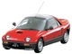 スズキアルトワークスのFFターボのユニットをそのままリアミッドシップに配したスポーツカー。ボディ構造も独特でキャビン部にH型フレームをもつ強固なスチール製スケルトンモノコックを採用し、そこに軽量なプラスチック製アウターパネルを装着する。ドアは上に跳ね上げるタイプのガルウイングドアだ。インタークーラー付きのターボエンジンをリアミッドシップに搭載し、5MTと組み合わせる。足回りもアルトワークスからの流用となり4輪ストラットサスに4輪ディスクブレーキ、タイヤは155/65R13を装着。アルミホイールとABSはオプション設定となっている。(1992.10)