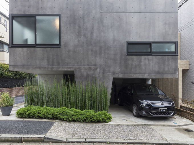 いくつもの機能を果たした結果が見た目の美も生んだ、足元に愛車を収め、都心の空に浮かぶ住宅だ。