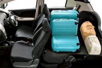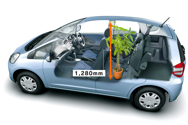 フィットでいいのは、まるで小さなミニバンのごとく、フレキシブルに使いこなせること、だ。特に人を乗せる以外の機能の充実度は魅力。ラゲッジスペースは便利なネット付きトノボードを備えるほか、スペース拡大時の容量はたいしたものだし、後席の座面をハネ上げて、床から高さを稼いだ空間も作り出せる。フラッと立ち寄ったインテリアショップで掘り出し物の家具があった・・・などというときも、フィットなら躊躇せず“お持ち帰り”ができる。