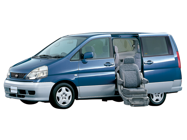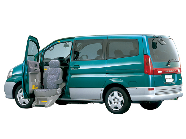 助手席またはセカンドシートの回転&昇降は、どちらも回転が手動で、昇降は電動で行う。オプションで回転も電動にすることが選べた。また、セカンドシートがそのまま脱着でき、車外では車いすとして使用できる仕様も用意されていた。いずれも乗車定員は7人なので、親子三代での旅行も十分可能だ。また助手席タイプは、通常のセレナ同様、2列目シートを脱着して3列目と対座させることもできる(駐車した状態でのみ使用可能)。