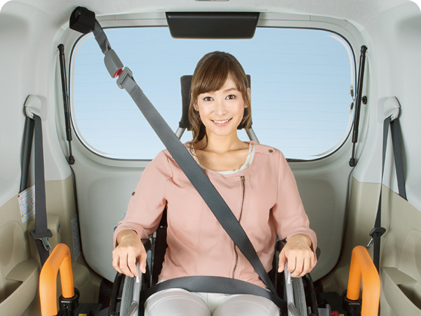 車椅子のまま乗り込む際は、スロープと電動ウインチ(いずれも全車標準装備)を利用します。また、同社の車いす仕様車としては初めて車椅子の方専用の3点式シートベルトを備えたほか、スロープの突出量を旧型より約95mm短い1115mmとすることで、旧型より狭い場所での乗り降りを可能にしました。
