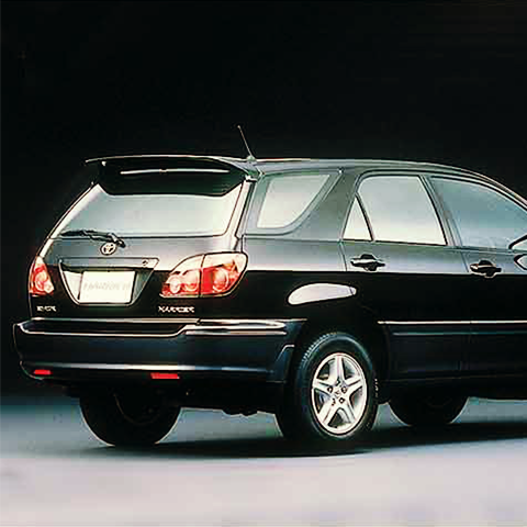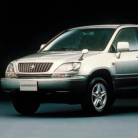 発売当初「WILD but FORMAL」というCMキャッチコピーが話題を呼んだ初代ハリアー。セダンのカムリをベースに開発されたミドルクラスSUVで、2.2リッター(途中で2.4リッターとなった)もしくは3リッターエンジンを搭載し、FWDと4WDがある。海外ではレクサスRXとして販売されたモデルで、そのバタくさいスタイリングと日本でも使いやすい上限のサイズなどが受け、人気を集めた。日本でもレクサスブランドが展開されるようになった現在は、RXとハリアーは別のモデルとなったが、ともに人気銘柄だ。