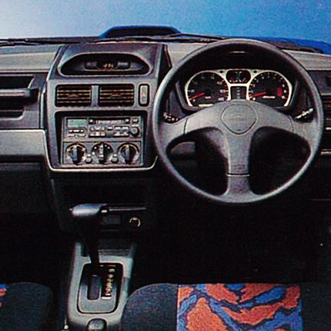 本格的なクロスカントリー・ビークルである三菱 パジェロの軽自動車版。軽自動車ではあるが、フロア部分を強化したモノコックボディにパートタイム式4WDが組み合わせられ、パジェロの名に恥じぬモデルといえる。また、クロカン軽自動車の定番中の定番であるスズキ ジムニーと比較しても遜色のない高い悪路走行性能を備えている。初代パジェロミニから引き続き搭載される4気筒5バルブエンジンがバブル景気の残り香を漂わせる。1998年~約15年間と長期にわたって販売されたため、中古車としてのタマ数は抱負。